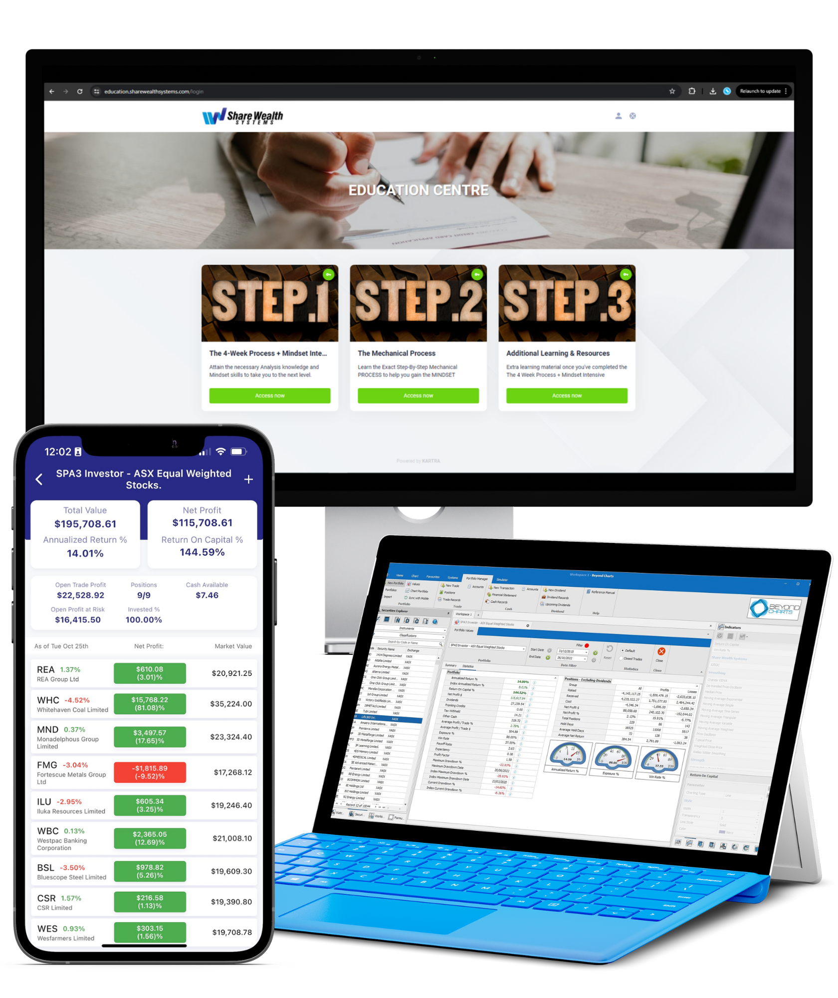 Upon joining the program, we will send installation instructions for our purpose-built Charting Software, called Beyond Charts. This software is used to deliver our rules-based process and for portfolio tracking and management. Individuals who enjoy conducting their own analysis, and building their own systems, can also do so within this software package.